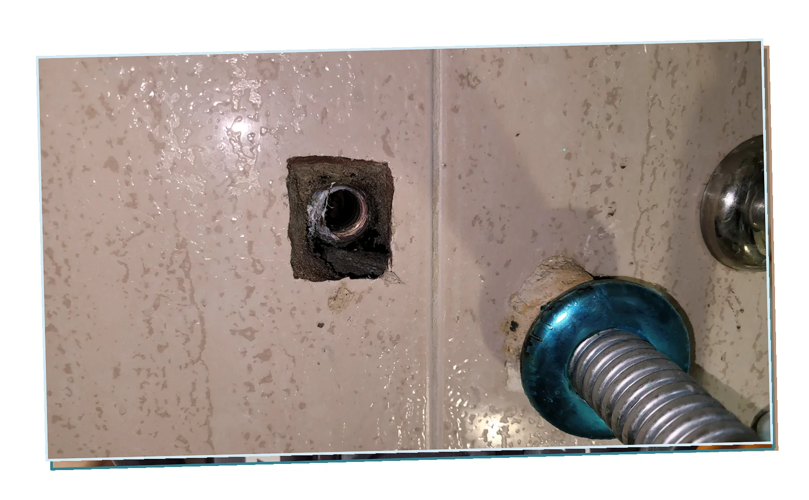 내부 배관을 점검한 결과 급수관 연결부위의 미세한 틈 에서 누수가 시작되었음을 확인했습니다.