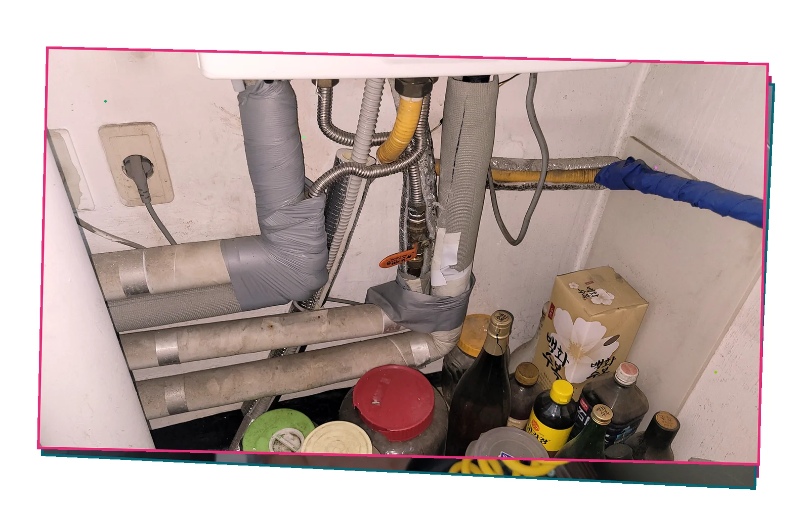 물 침투의 흔적이 뚜렷했으며